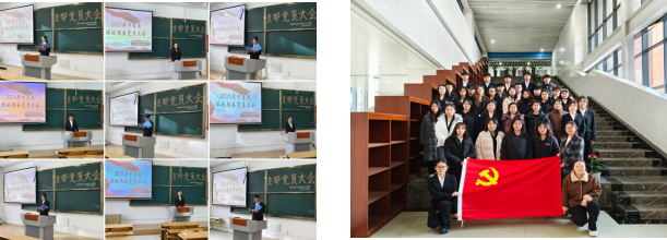 随后,接收预备党员议程正式启动。黄玥等9名发展对象依次登台,结合自身成长与学习实践经历,从对党的认识、入党动机、考察期成果、履职情况及未来规划等方面作全面汇报,真诚地表达了自己的入党决心。各发展对象的入党介绍人依次发言,介绍考察期内各位同志的思想动态、学业表现、群众基础及日常言行,客观评价了其在政治素养、责任意识等方面的成长与进步,明确表达了同意接收其为中共预备党员的意见。
